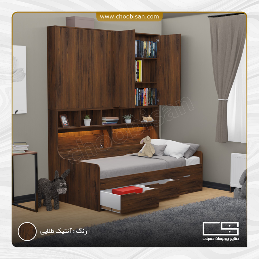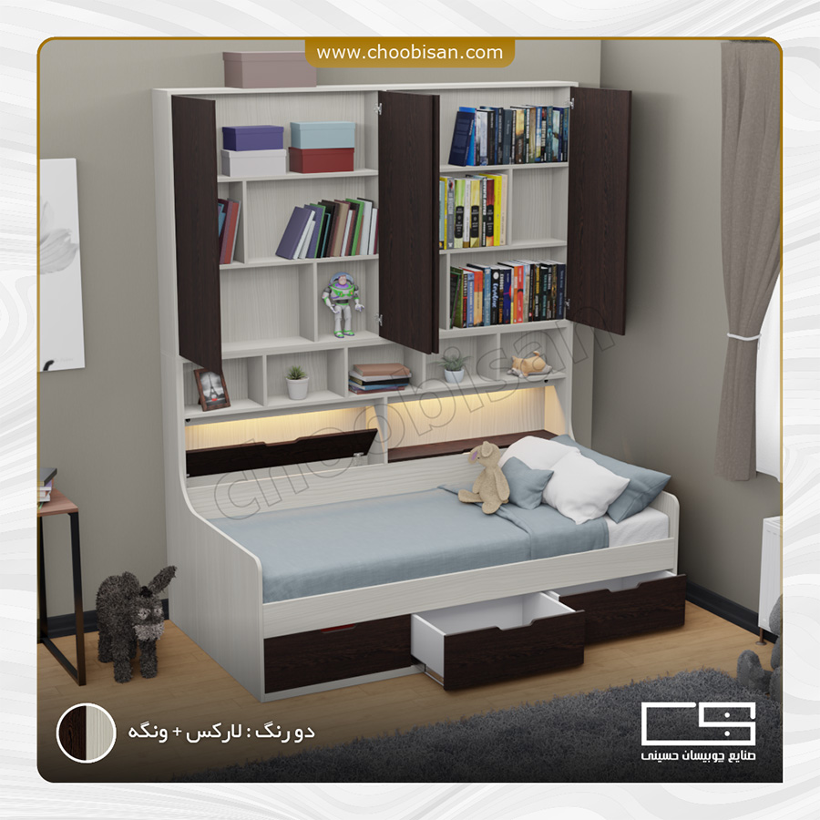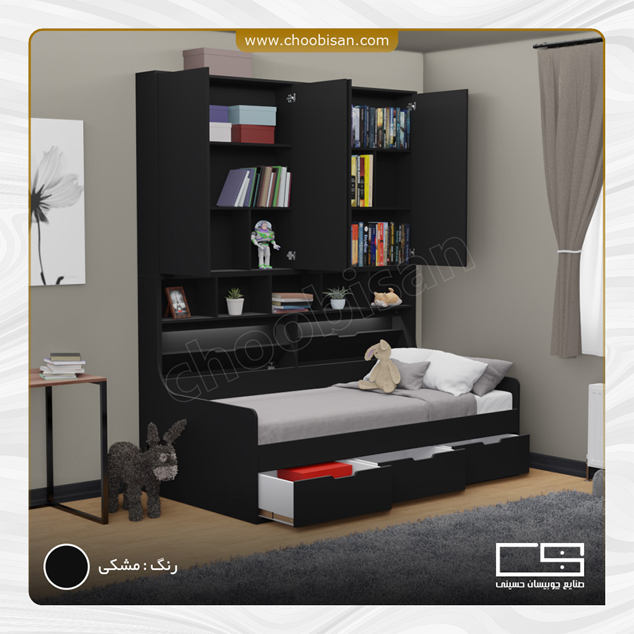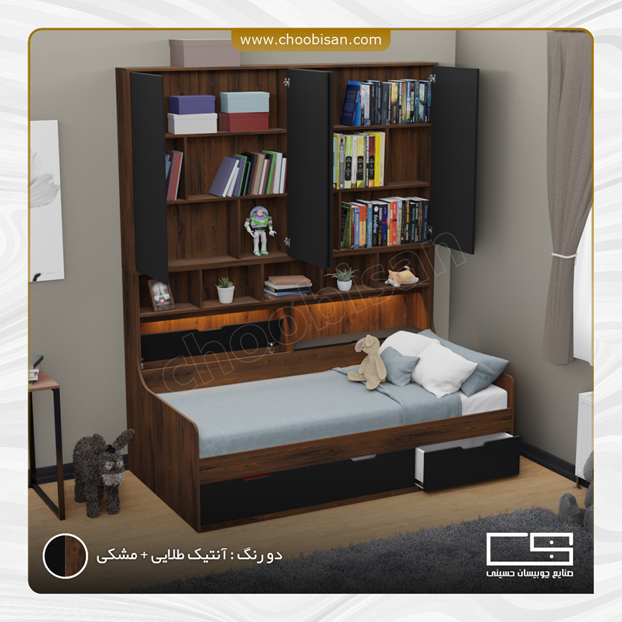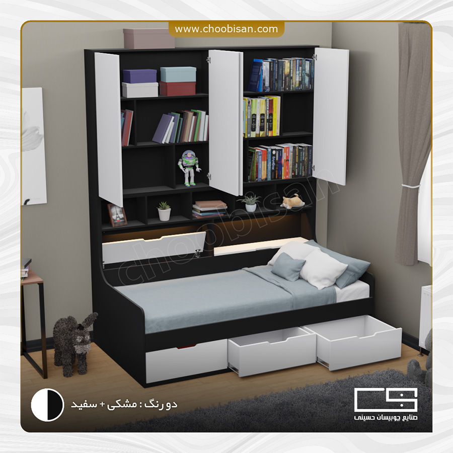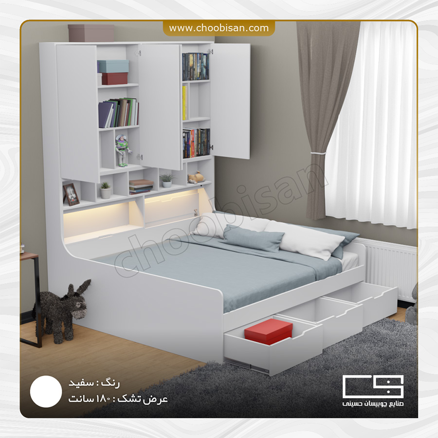 تخت خواب 3 کشو 3 باکس کتابخانه دار