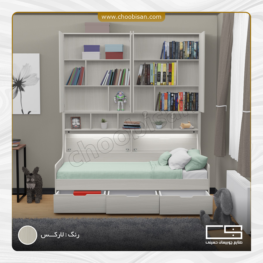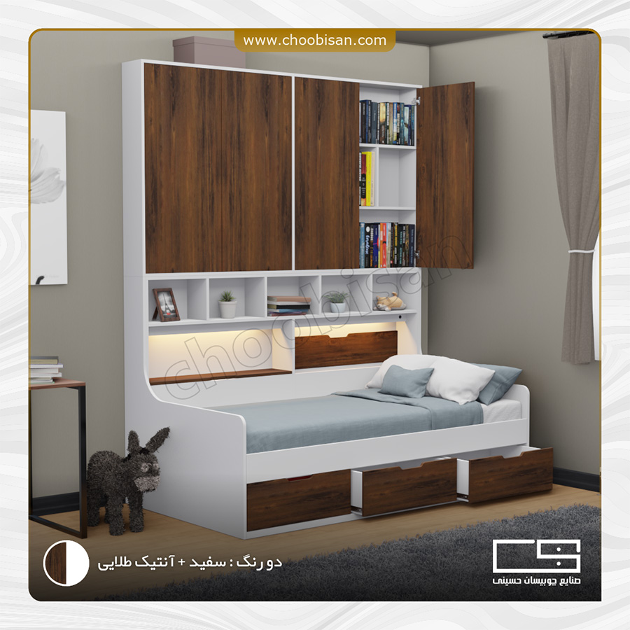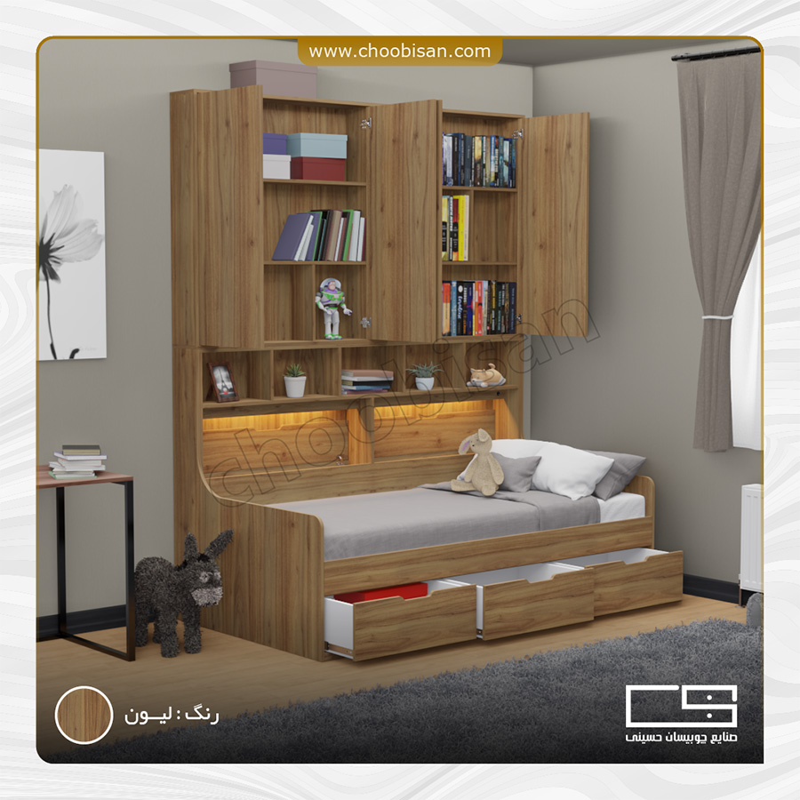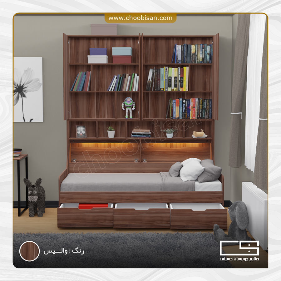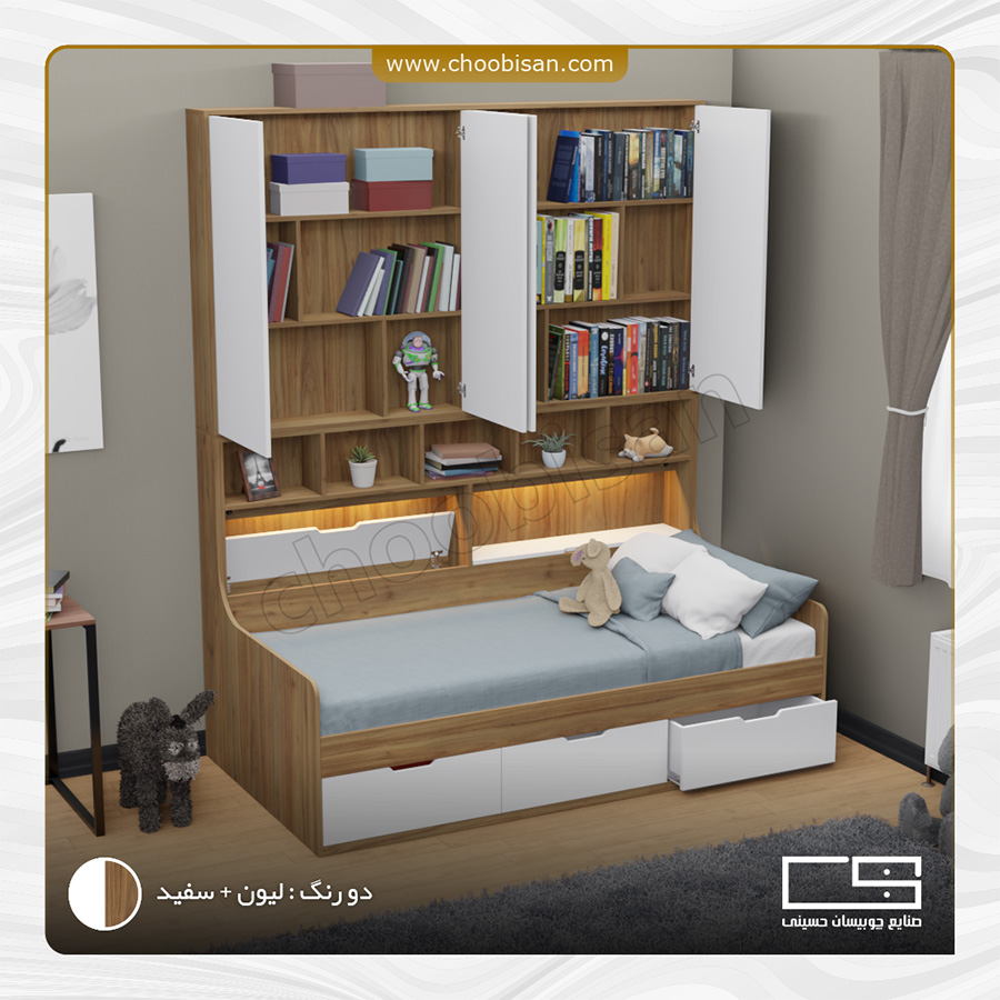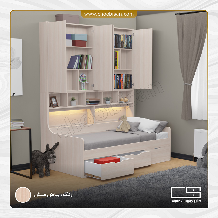 تخت خواب 3 کشو 3 باکس کتابخانه دار