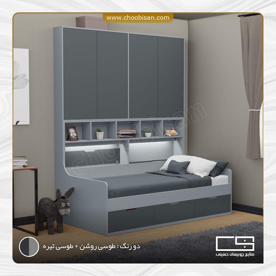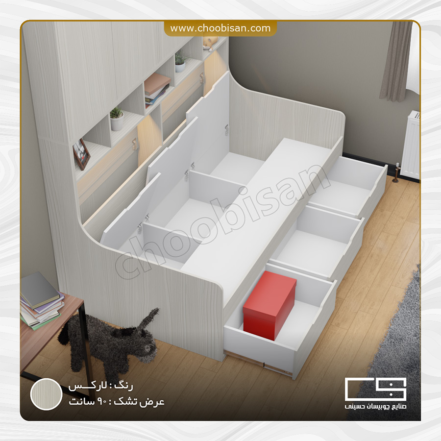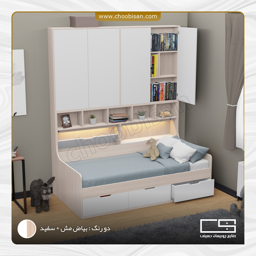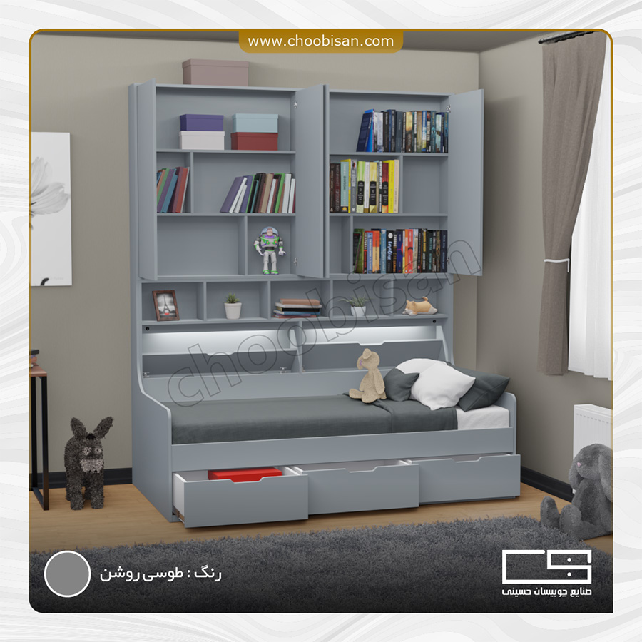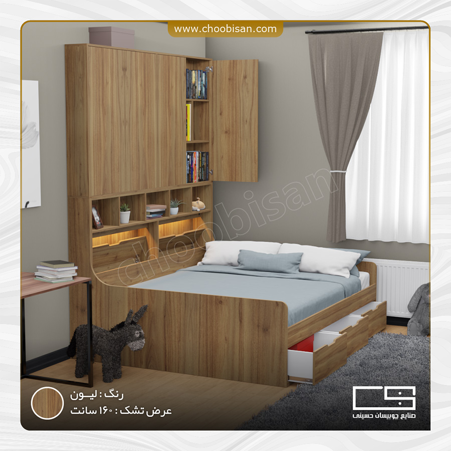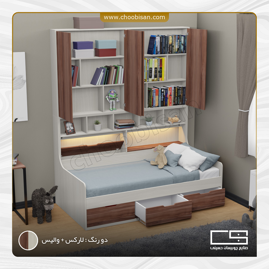 تخت خواب 3 کشو 3 باکس کتابخانه دار
